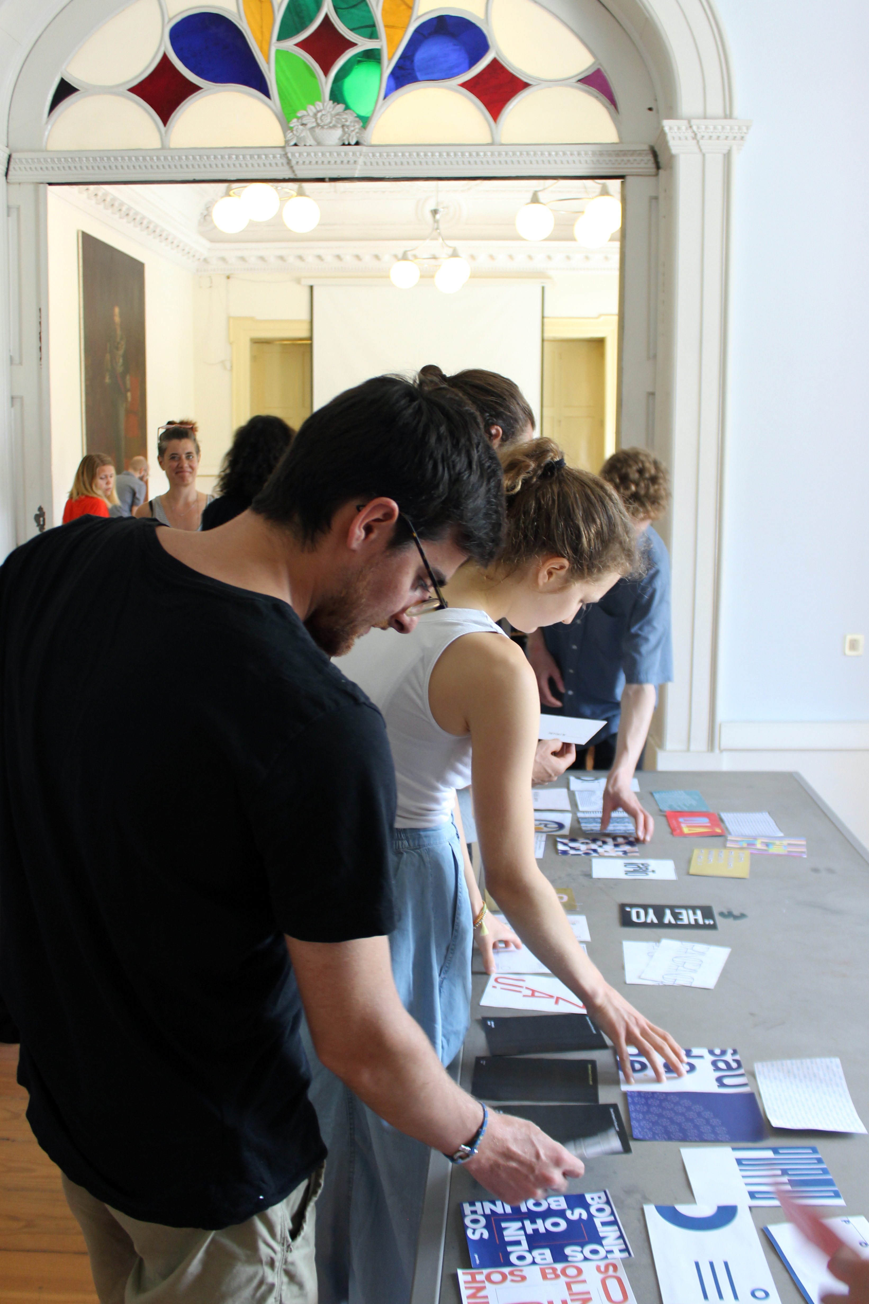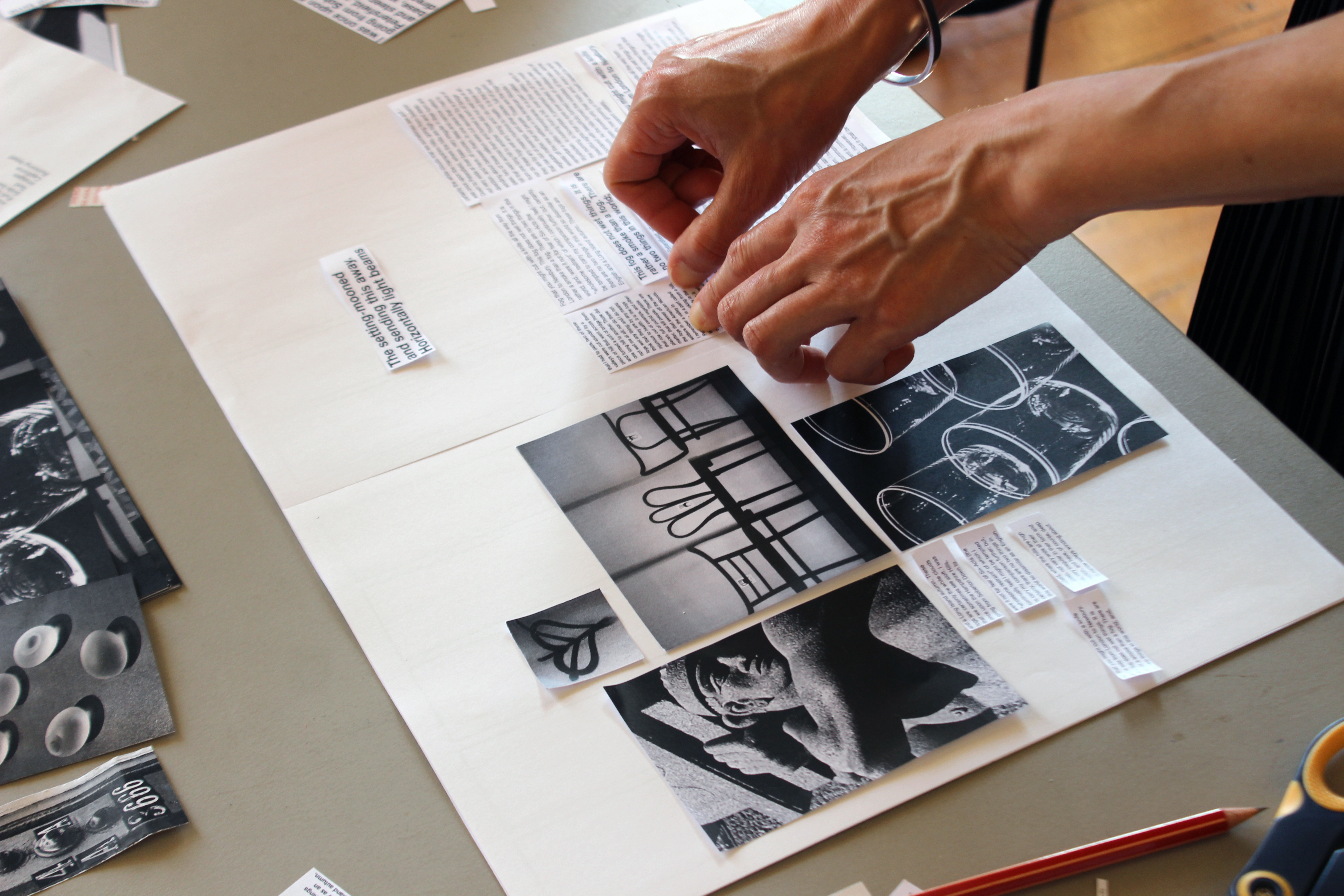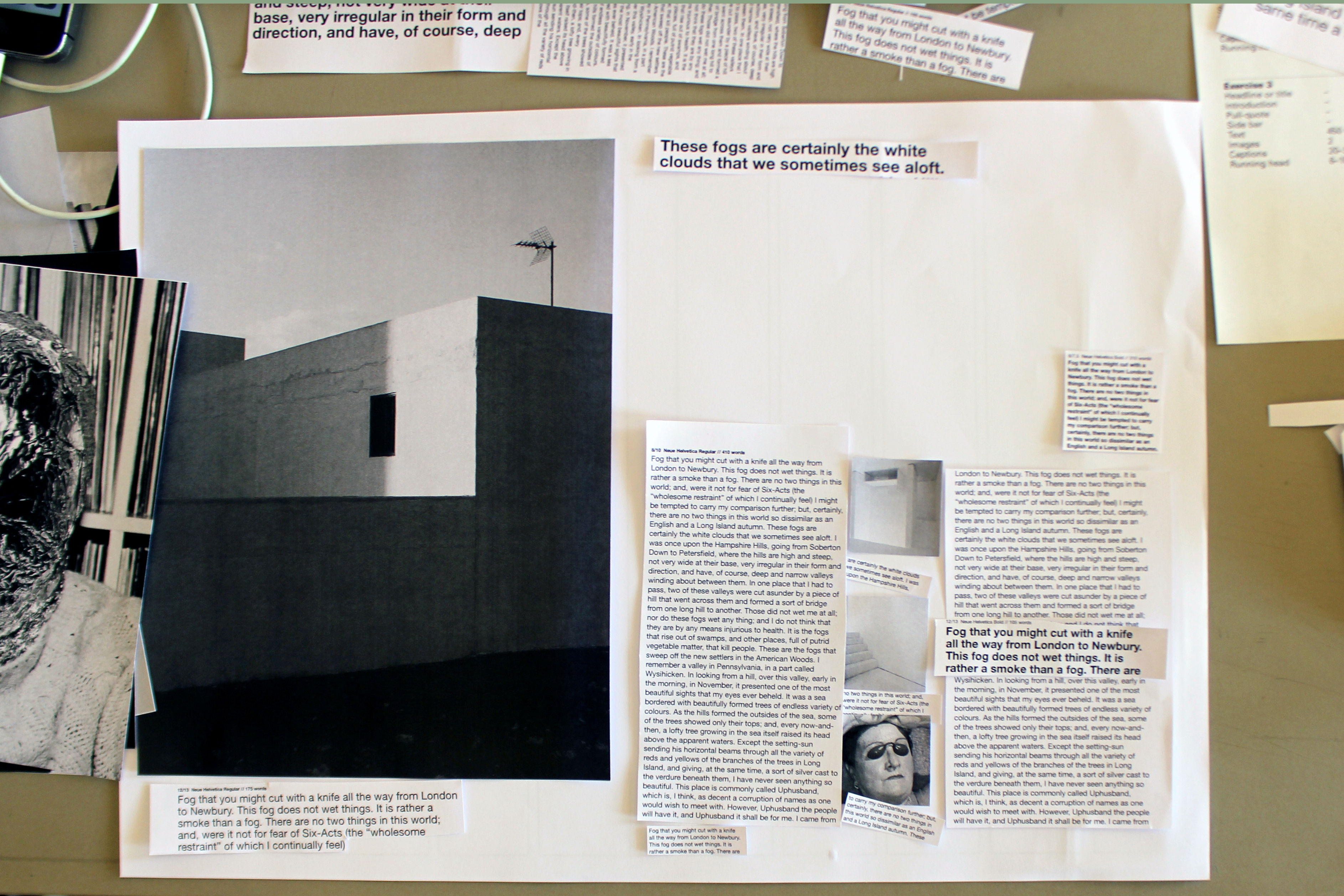 The first short typographic exercise was followed by one about page composition, using manual methodologies – cutting and pasting – and working within strictly defined parameters. The day finishes with informal discussion over drinks in a nearby venue.
